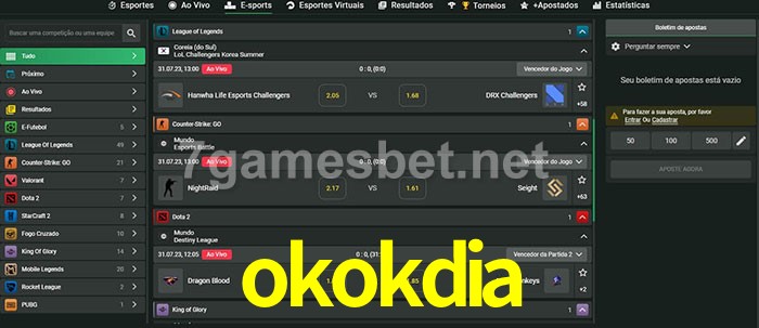 O okokdia oferece uma grande seleção de opções de apostas em e-sports com probabilidades competitivas